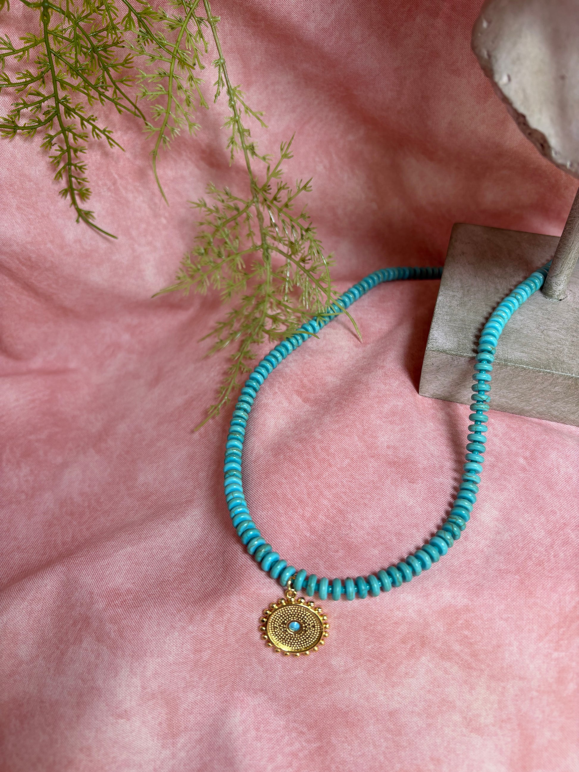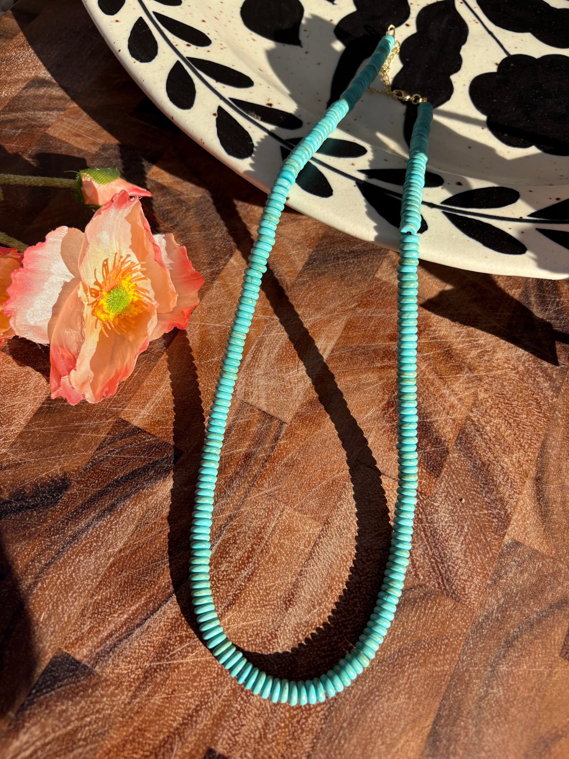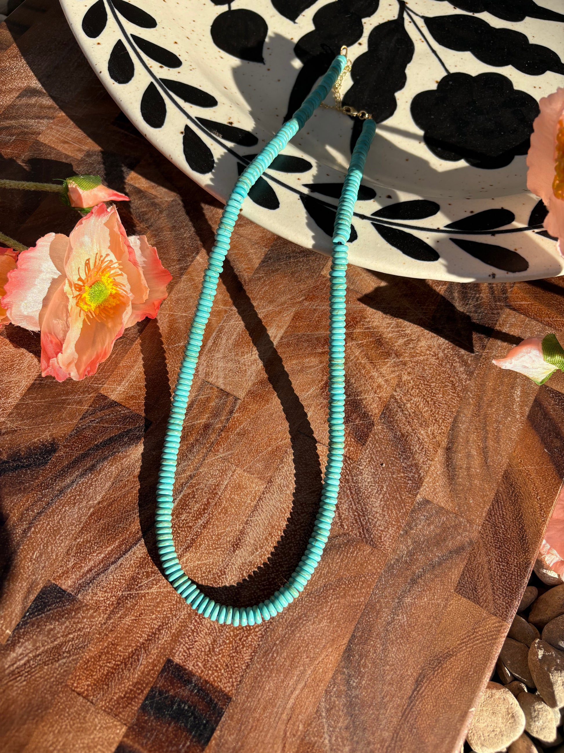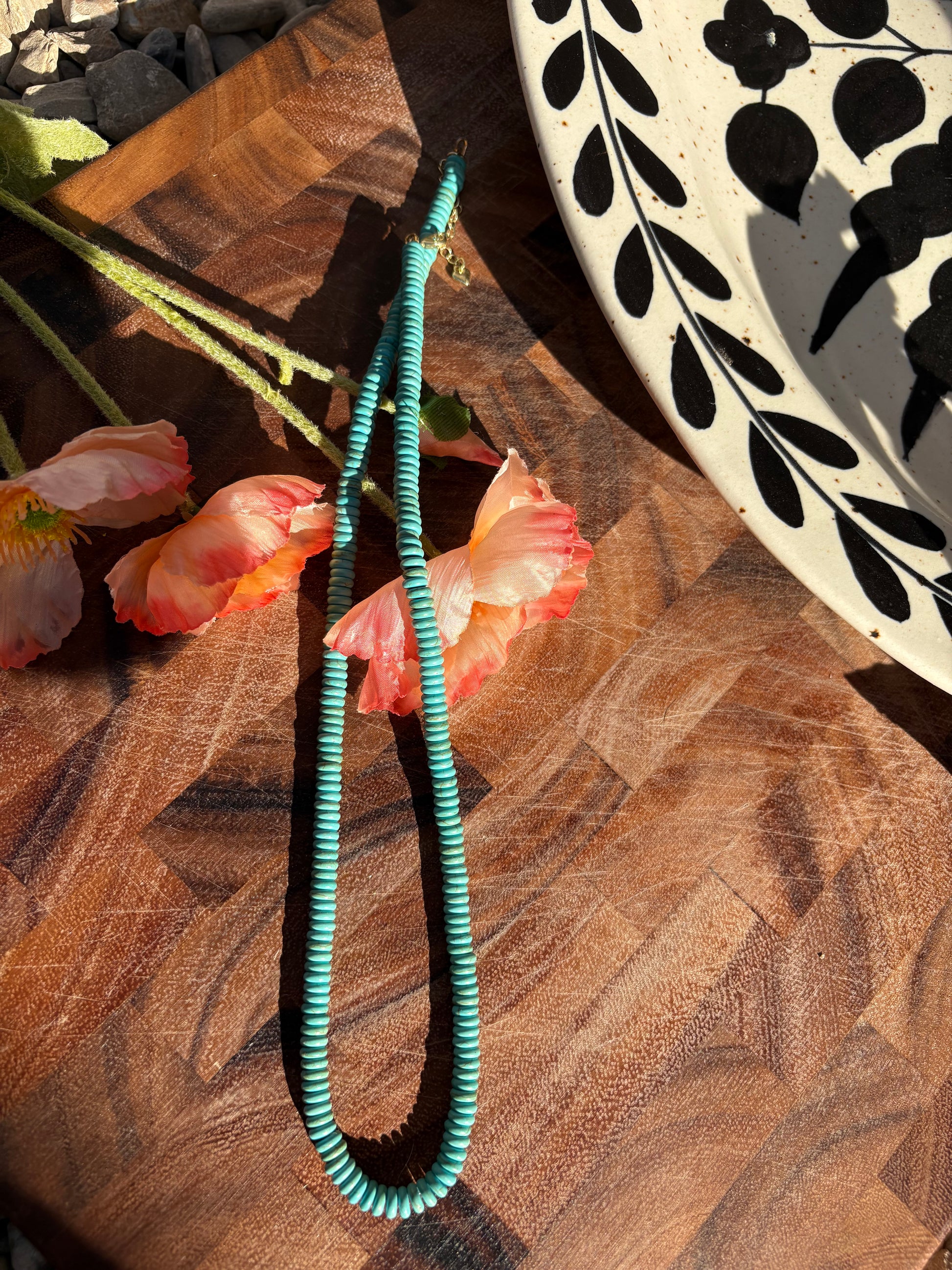 As refreshing as its namesake and just as effortlessly cool, Ranch Water is your laid-back layering essential. Strung with smooth turquoise-toned howlite discs and designed at a breezy 24 inches, this piece is made to mix, match, and sip cocktails in the sun.
