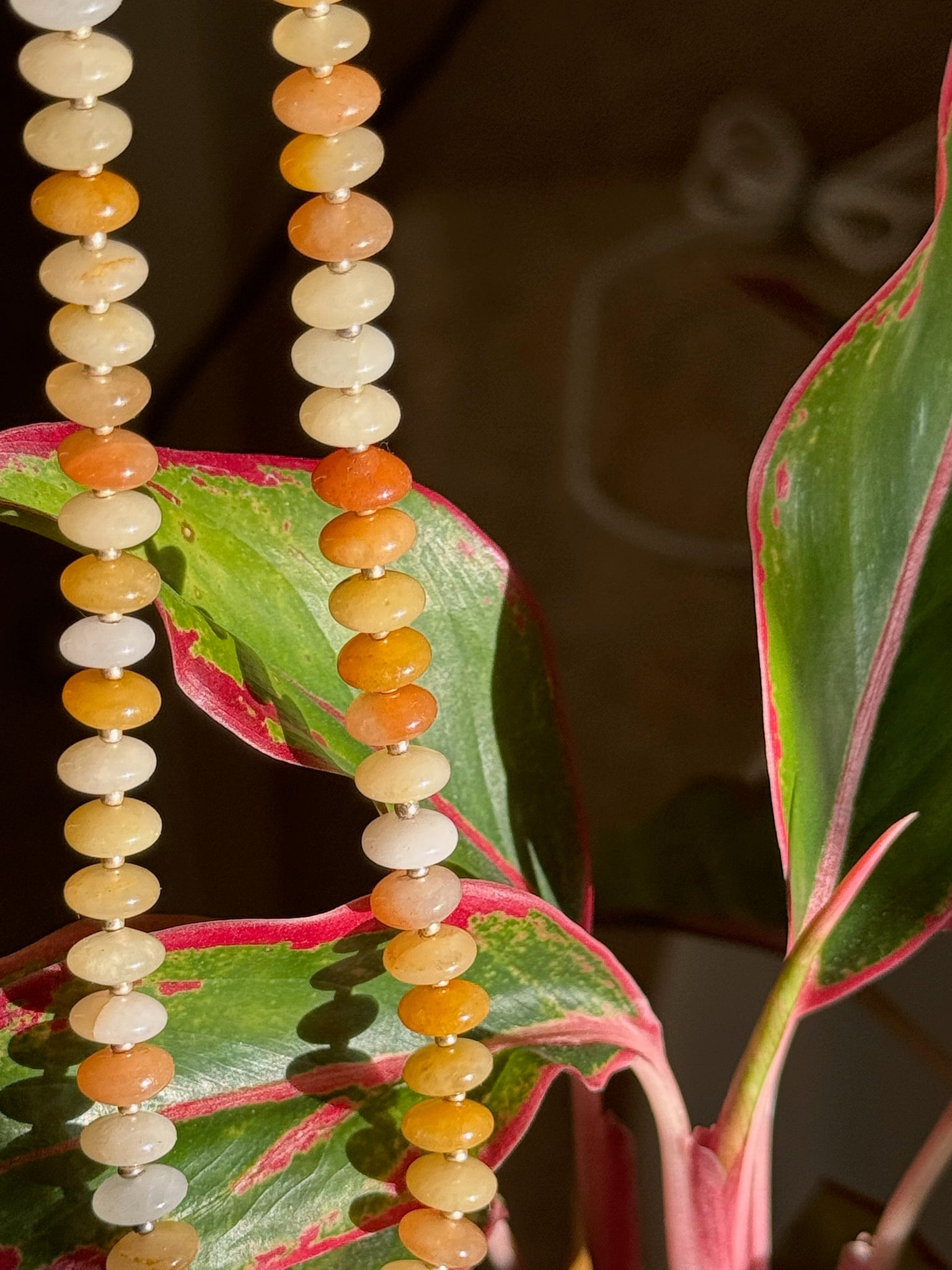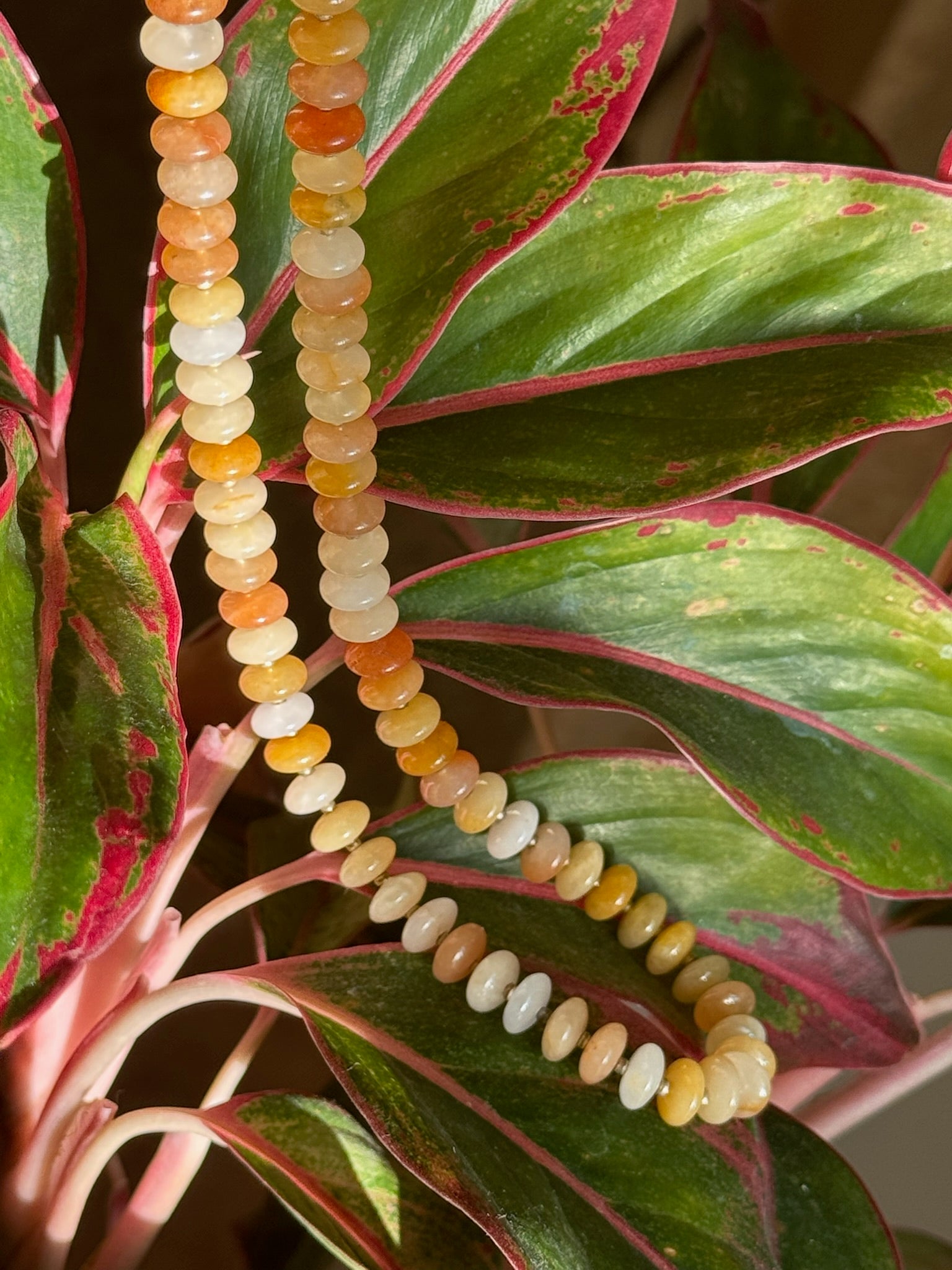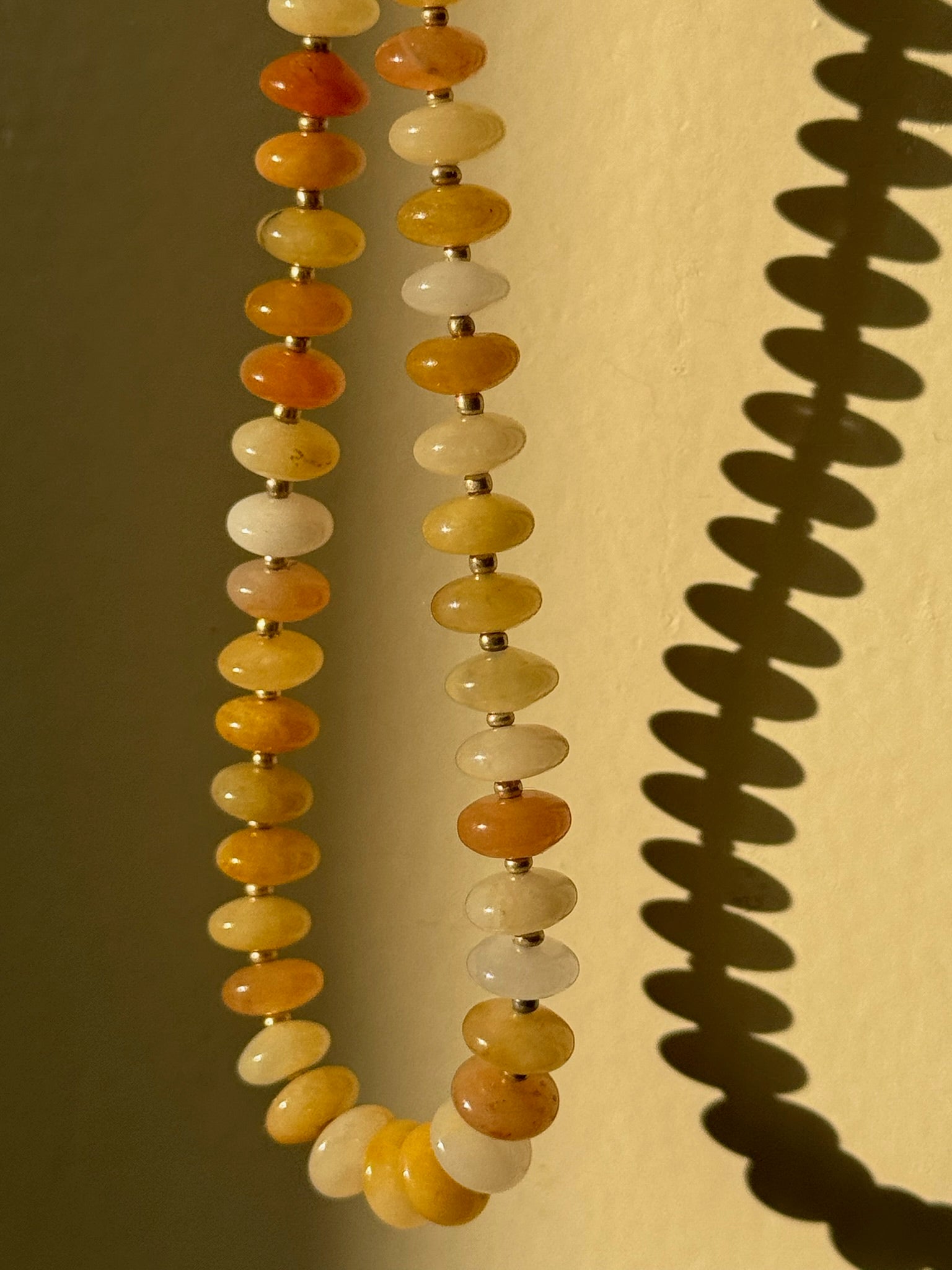 Made from sun-kissed shades of natural jade, Golden Hour is that warm, glowy energy bottled up in bead form. A spectrum of honey, amber, and soft ivory tones make this piece feel like the last rays of sunset—golden, fleeting, and unforgettable.